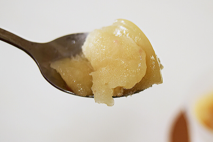 「フローズンゼリー 白桃」と同様に、ゼリーのようにねっとりとしていました。シャトレーゼの商品ページには、食感の違いについてなにも書かれていないのですが……。