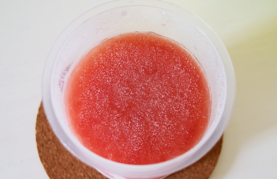 食べてみると不思議なことにシャリシャリしていません!フローズンゼリーはすべて同じ条件で冷凍していたため、ちょっと意外でした。食感としてはとっても冷たいゼリーでねちょっとしています。
