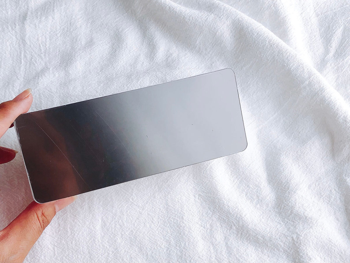 フィルムを外すときれいなミラーのようになっています。 きれいに映り、横長のおしゃれなミラーだ!と思いきや……?