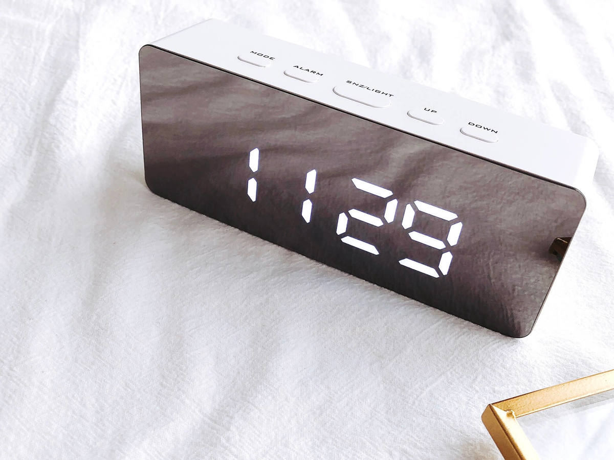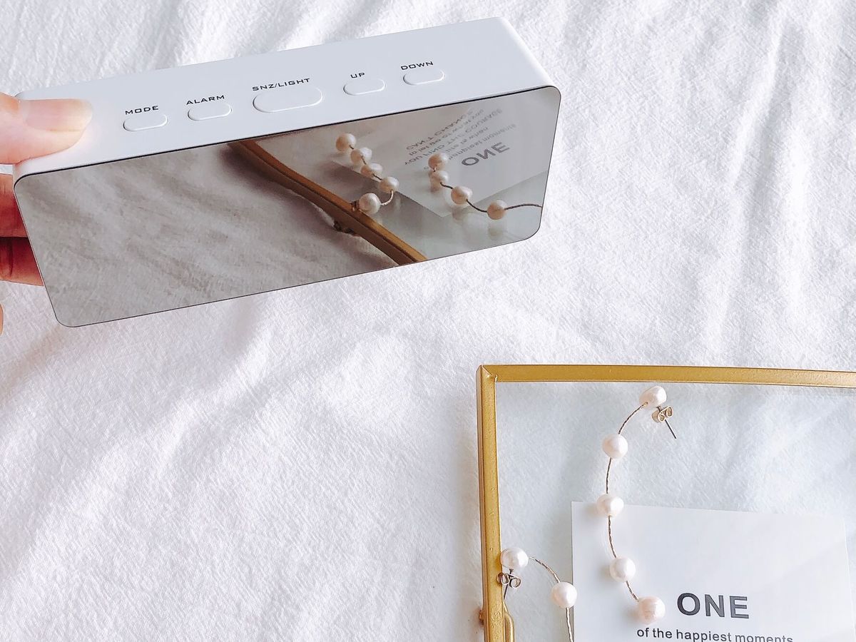 ミラー画面に時刻が光って表示されました。なんとこれ、「ミラーデジタル時計」なんです!