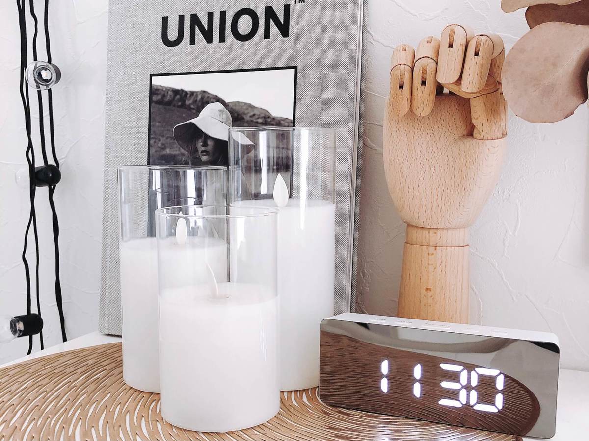 パッと見て時刻が分かりやすいだけでなく、おしゃれなデザインに見る度にやけてしまいます(笑)。