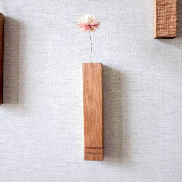 シンプルデザインがどんなインテリアにも馴染む、木の温もりが心地良い「エンジュの一輪挿し」です。壁に画鋲で固定できるので、手軽にお部屋の印象を変えることができます。