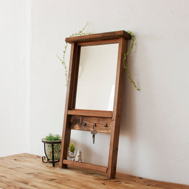 ミラー付きなので、身支度のチェックにも最適。玄関の下駄箱の上に置いたり、リビングに置いてもおしゃれに飾れる作品です!