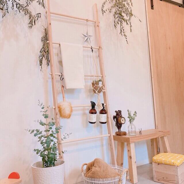 はしごのようなシンプルデザインが人気!コンパクトに折りたたむことができる作品「壁掛けウォールシェルフ」です。壁に立て掛けるだけで、あっという間におしゃれな飾り棚に変身!