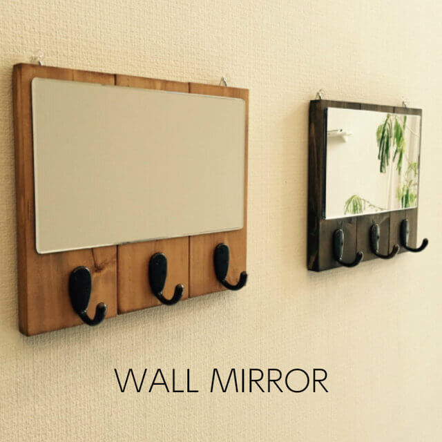 お部屋の雰囲気に合わせて2カラーから選べる、玄関の壁にあると便利な「ウォールミラー」です。フックが3つ付いているので、迷子になりがちな家や車などの鍵も掛けておくと便利ですよ!
