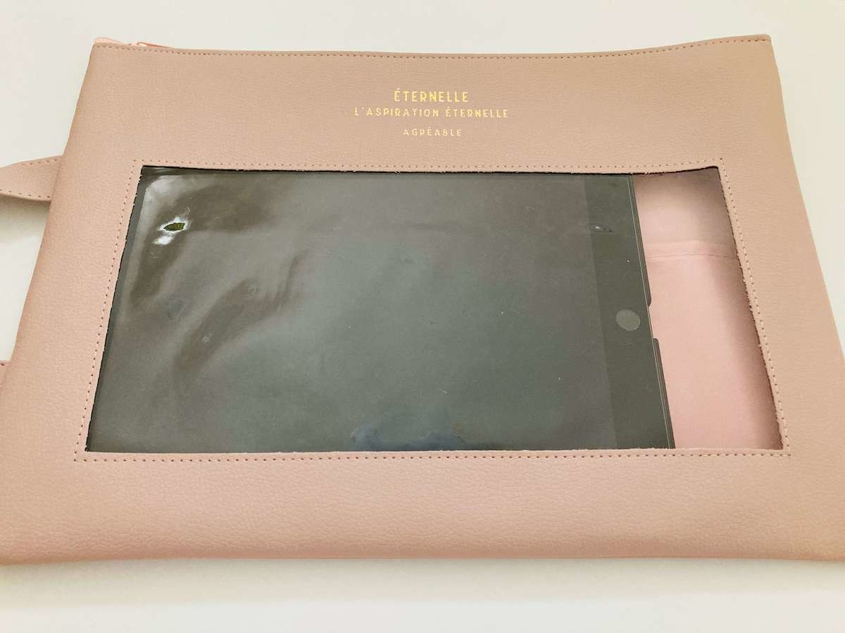 約10インチのタブレットも余裕で入りました。ただしタブレットケースではないので、持ち運びや取り扱いには十分に注意してくださいね。