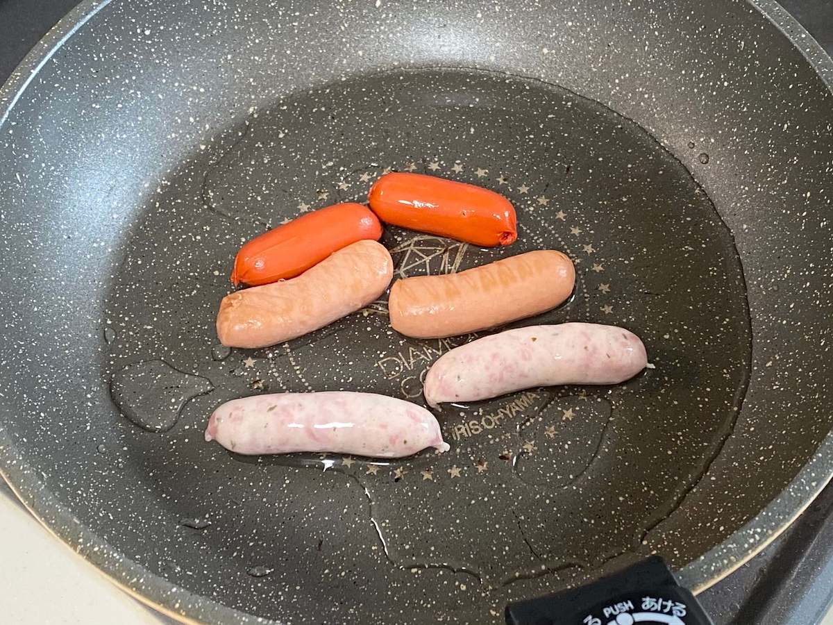 ボイルだけでは得られない、しっかりとした焼き目がつくことでウインナーがより一層美味しそう...!見た目からしていつものウインナーとは違うのが伝わり、食べるのが楽しみです♡