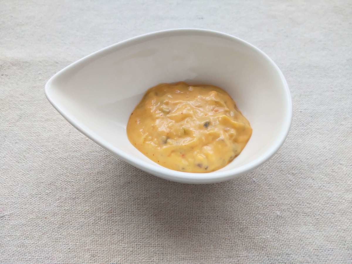サウザンドレッシングに刻んだピクルスが入っているようなイメージ。シャキッとした食感と爽やかな酸味が楽しめる仕上がりです。