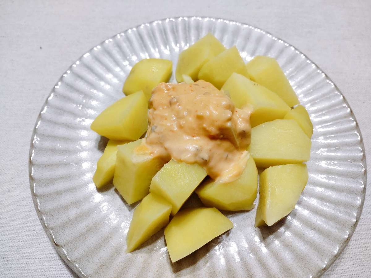 ゆでたじゃがいもにかけたら、あっという間に副菜の完成です。