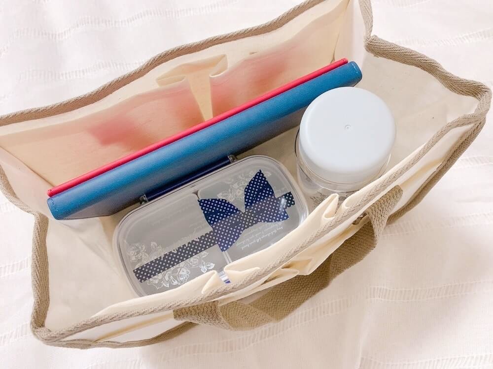 試しにお弁当箱・ミニボトル・B5サイズの手帳を入れてみましたが、まだまだ容量たっぷりで余裕があります。