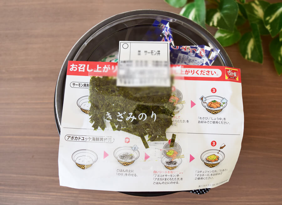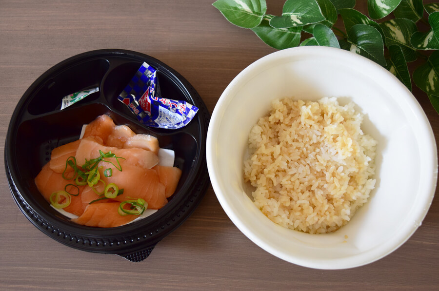 容器はサーモンなどの具材・ごはんと分かれているタイプでした。作り方(お召し上がり方)については、添付されていた紙に書いてありましたよ。迷わずに作れますね。
