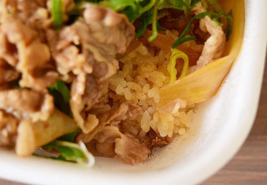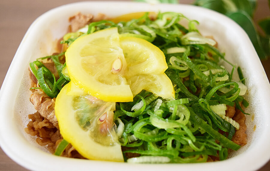 牛肉と一緒にごはんを食べてもレモンの酸味が……。ねぎくささは気にならなかったものの、個人的にはやっぱりノーマルな牛丼の方がしっくりくると思いました。