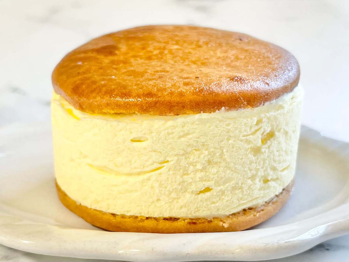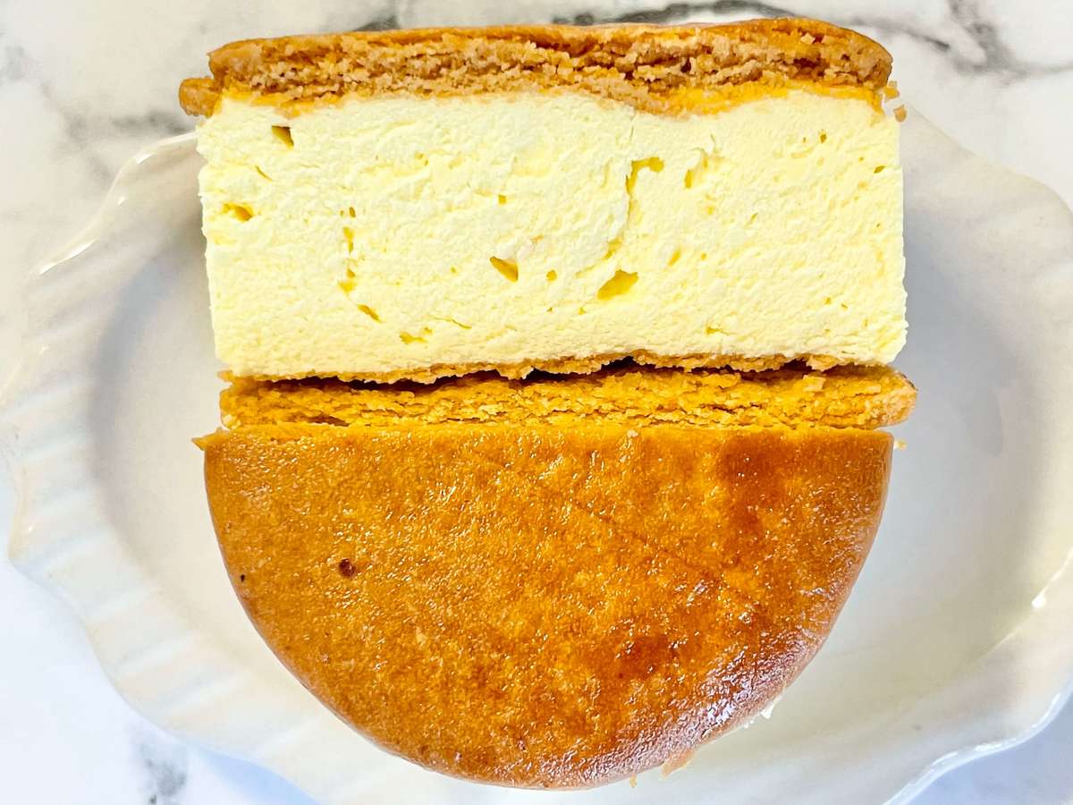 カットしてみると、思っていた以上にビスケットとレアチーズクリームが柔らかいです。