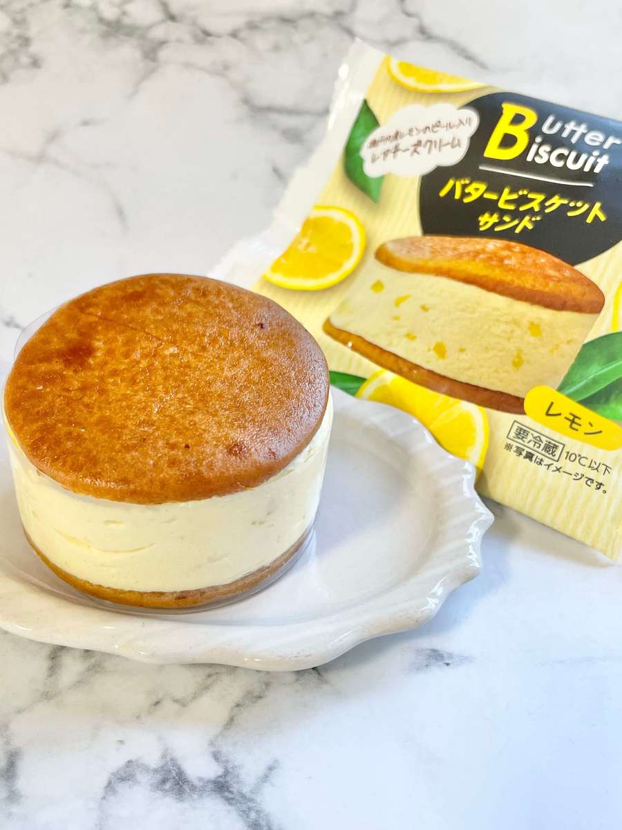 発酵バター香るビスケットに、瀬戸内産レモンのピールが入ったレアチーズクリームが挟んであります。