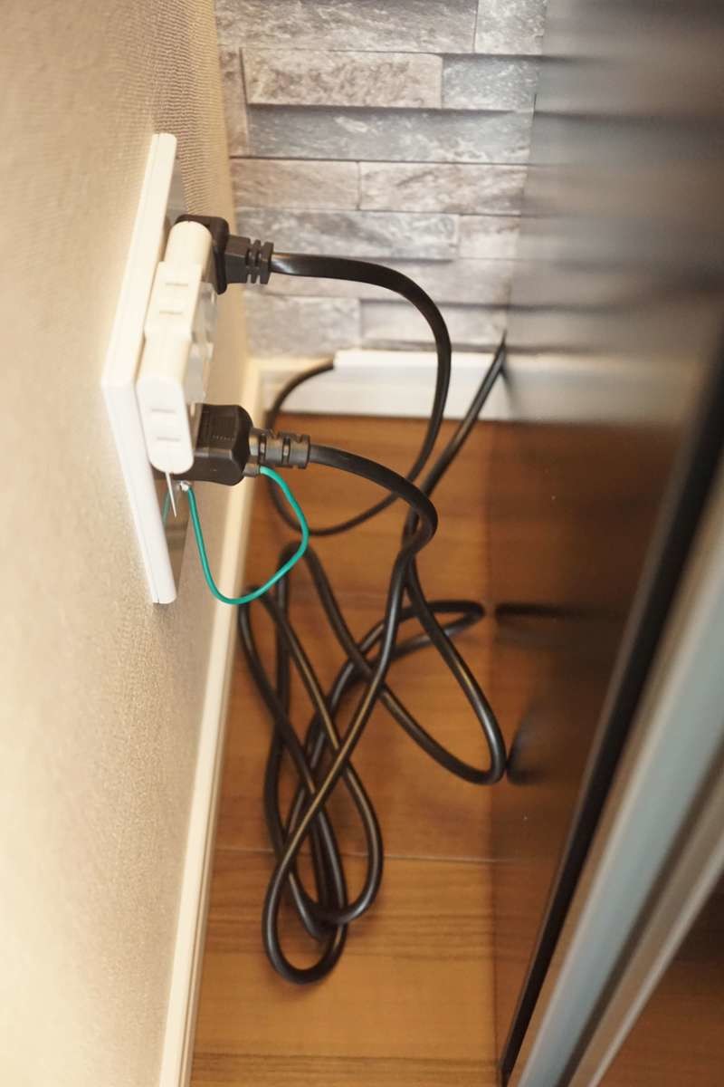 コンセントが長いとこのようにごちゃごちゃしてしまい、ほこりがついたときに掃除をするのも大変ですよね。