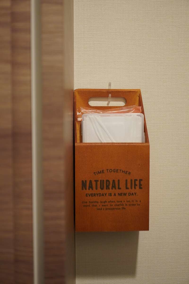 いつも玄関にマスクケースを置いていたのですが、壁に収納することでより使いやすくなりました。