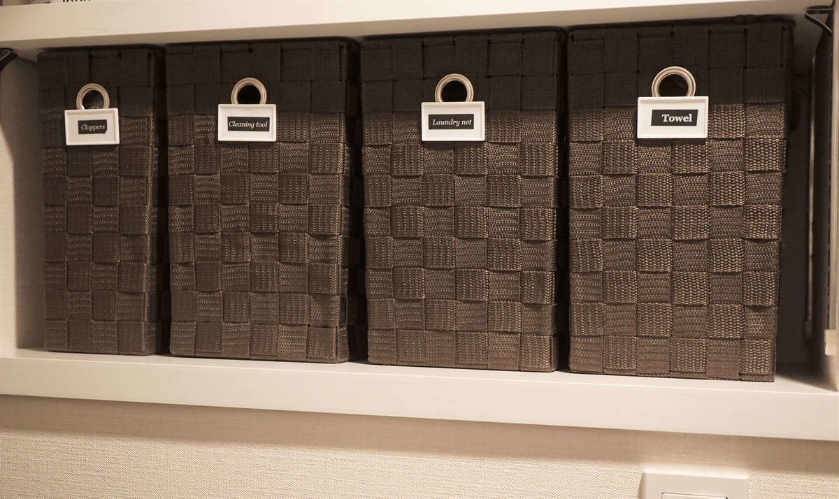 小物類はもちろん、タオル類や布団、掃除道具など、家中のもの大半をケースやボックスに入れて収納しています。