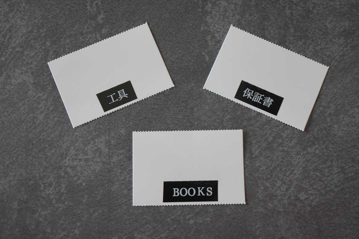 その際に必要になるのが「ラベル」です。 ラベルを貼ることで家族も収納されているものが一目でわかるようになるので、ラベルリングは欠かせません。