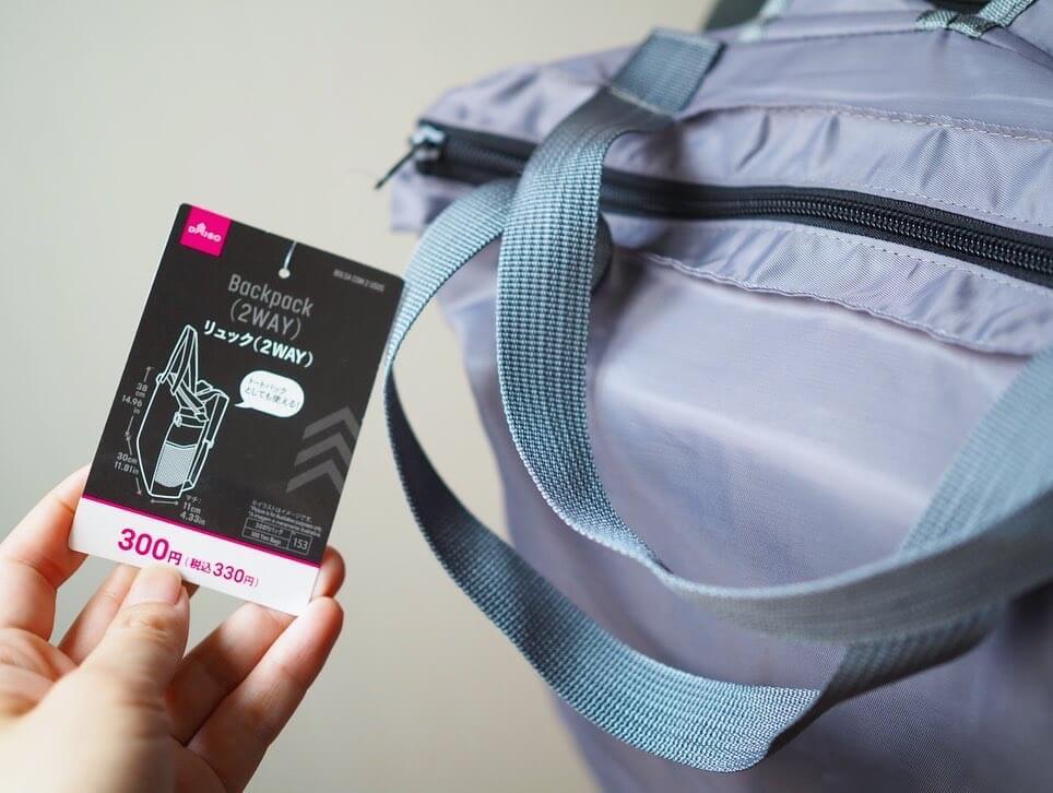 シンプルな無地グレーの大きめリュックが300円で手に入るのに驚き!