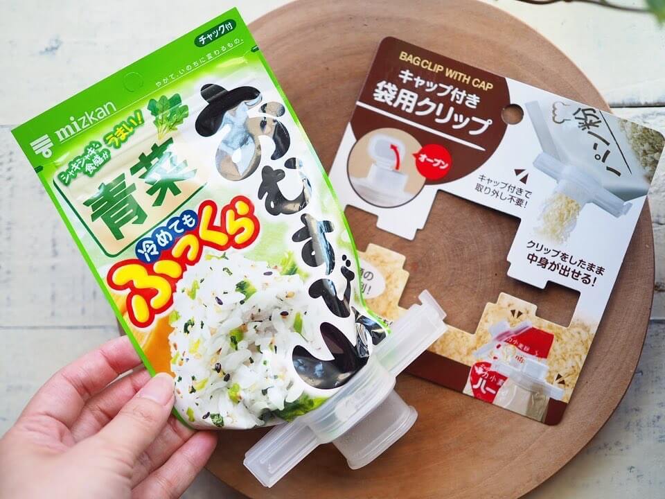 わが家ではふりかけの袋の底側につけて、キャップ付きふりかけ袋にして使うのがお気に入りです♪