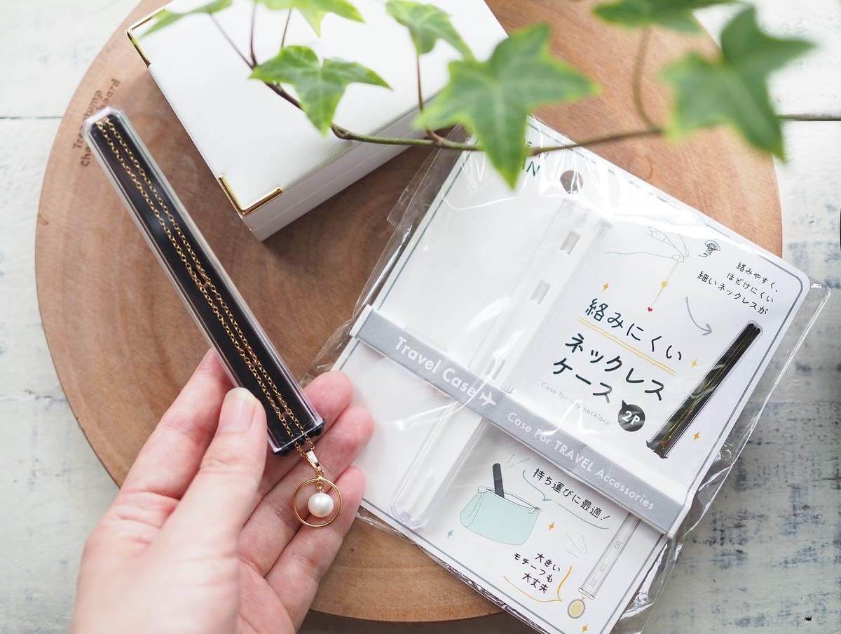 まずご紹介するのは、セリアの「絡みにくいネックレスケース」です。