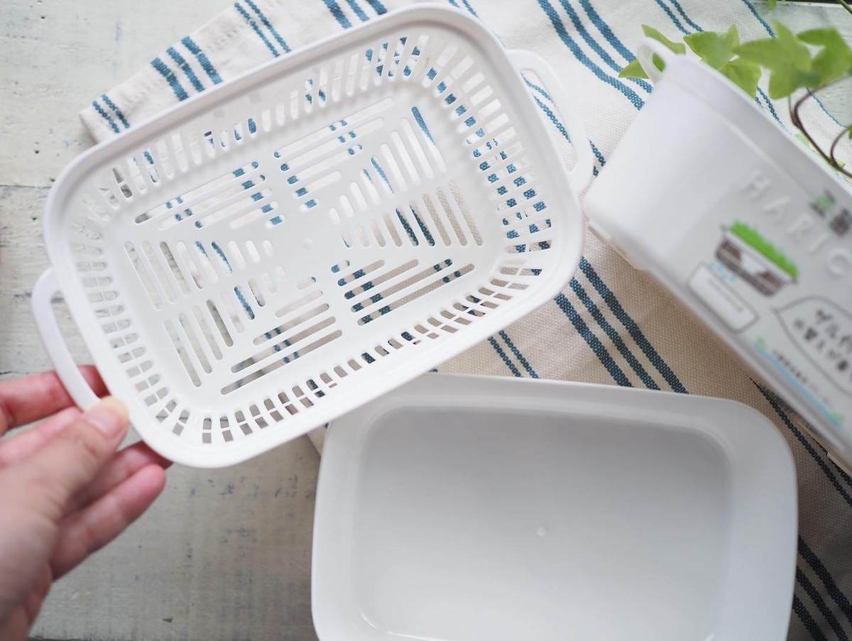 本体とザルの二重構造になっているので、水換えがしやすい水耕栽培用の容器なんです。