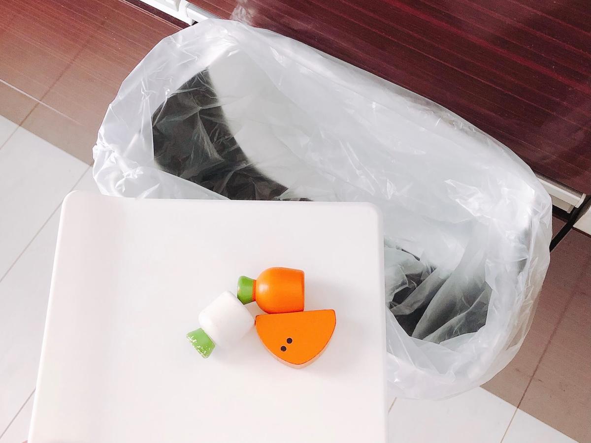 これまではポリ袋ホルダーに袋をセットしてワークトップの上に置き、それをキッチン用ゴミ箱にしていました。