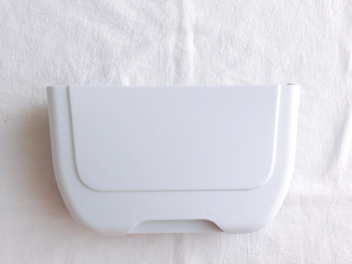 正面から見ると真っ白でシンプル。形は何やらドラえもんのポケットにも見えますね(笑)。