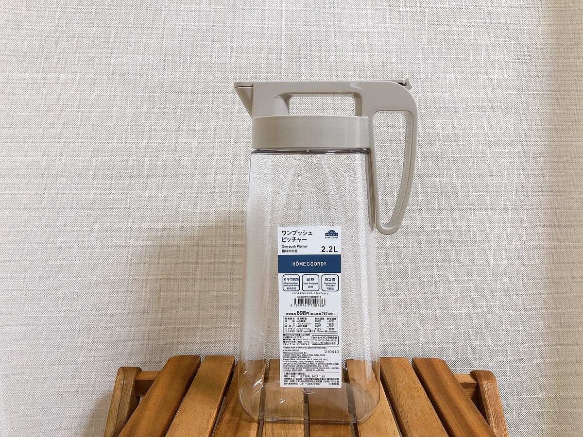 イオンのピッチャーは、カラバリがとてもおしゃれです。白、ベージュ、グレーとどれも控えめなカラーで人に見せたくなります!