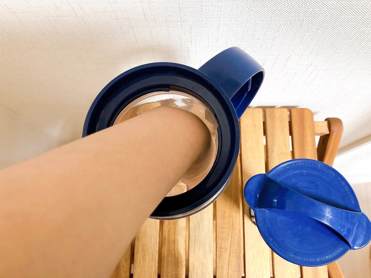 一方イオンのピッチャーは、持ち手とふたは一緒になったタイプなので、複雑な形をしていて、ちょっと洗いづらいです。慣れればそうでもないんですけどね。