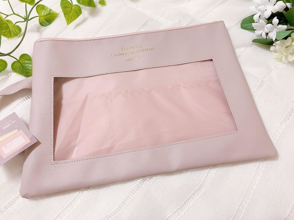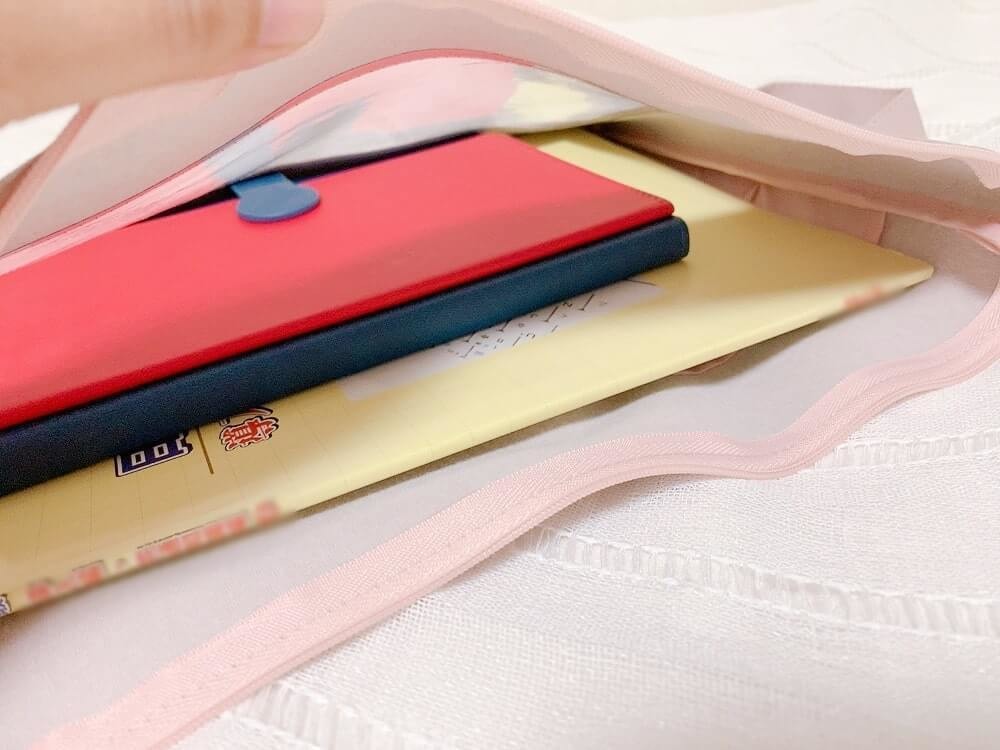 メインのバッグには入りきらないものを入れたり、A4サイズのファイルなど入れたり。ぎゅうぎゅうに詰めて曲がってしまった……、ドリンクと一緒に入れて書類が濡れてしまった……なんていう経験からはこれで卒業!