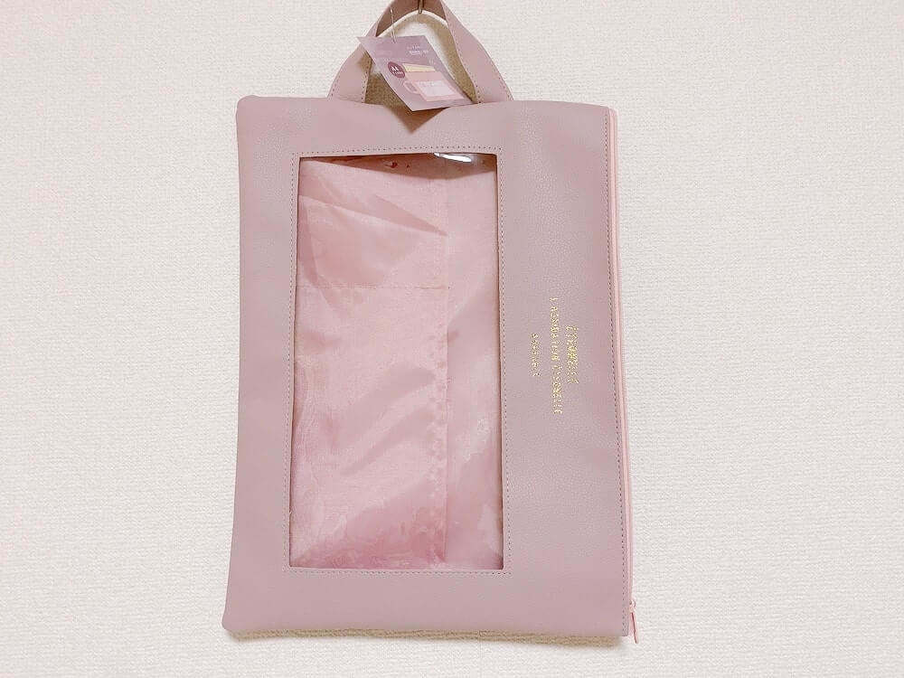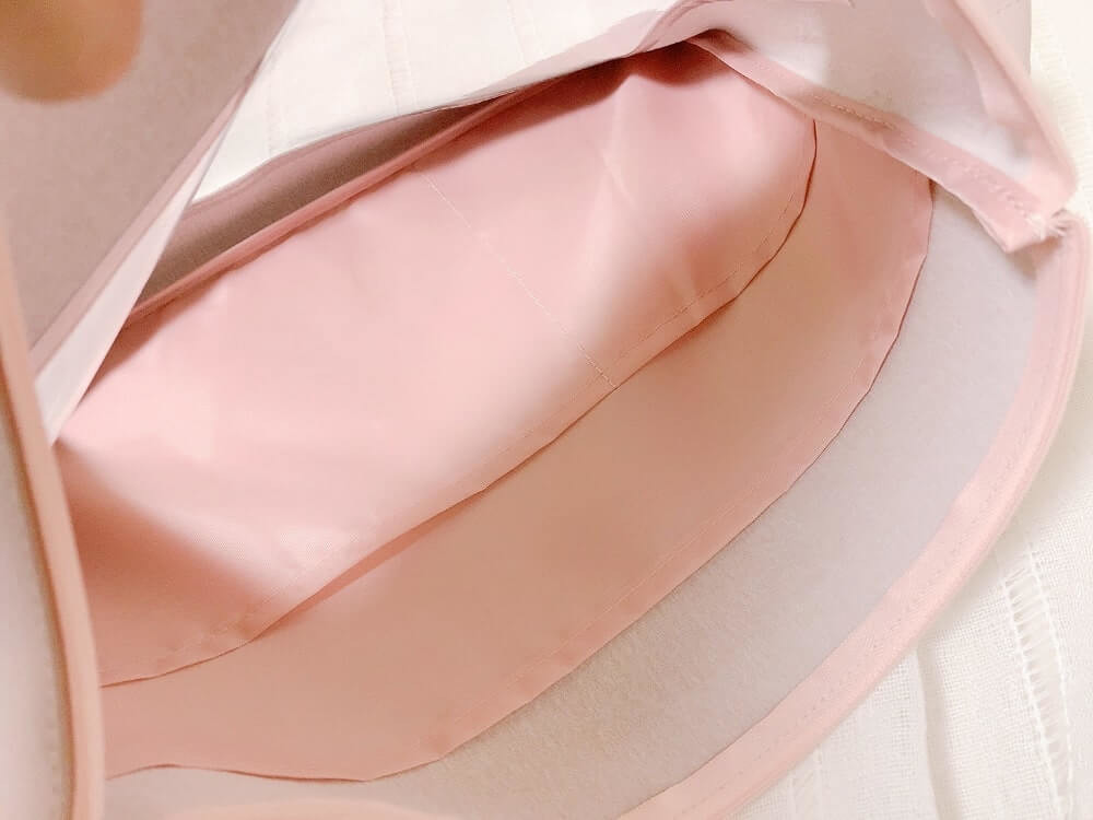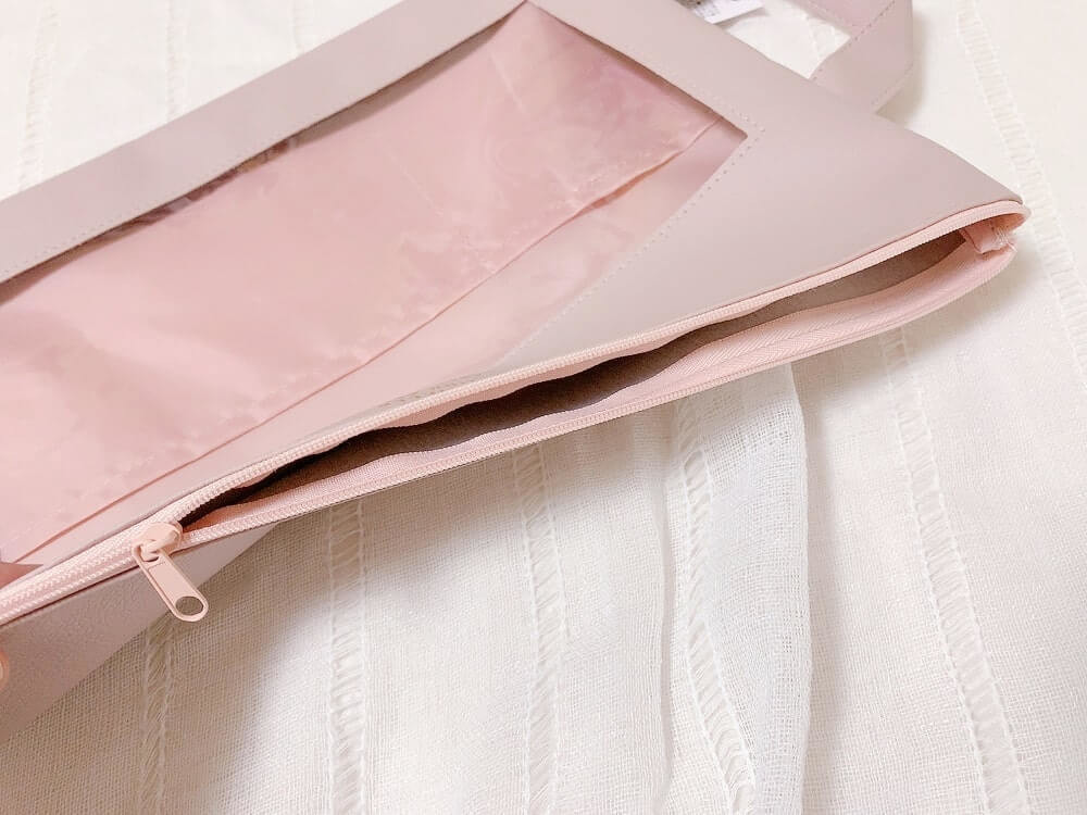サイドはファスナーでしっかりと閉めることができます。ファスナーのピンクはちょっと明るめ。使うのが楽しみ♡