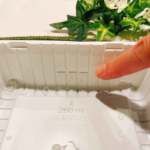 水の量は乾麺が入っていたトレーに書いてある線まで水を注ぐだけ。