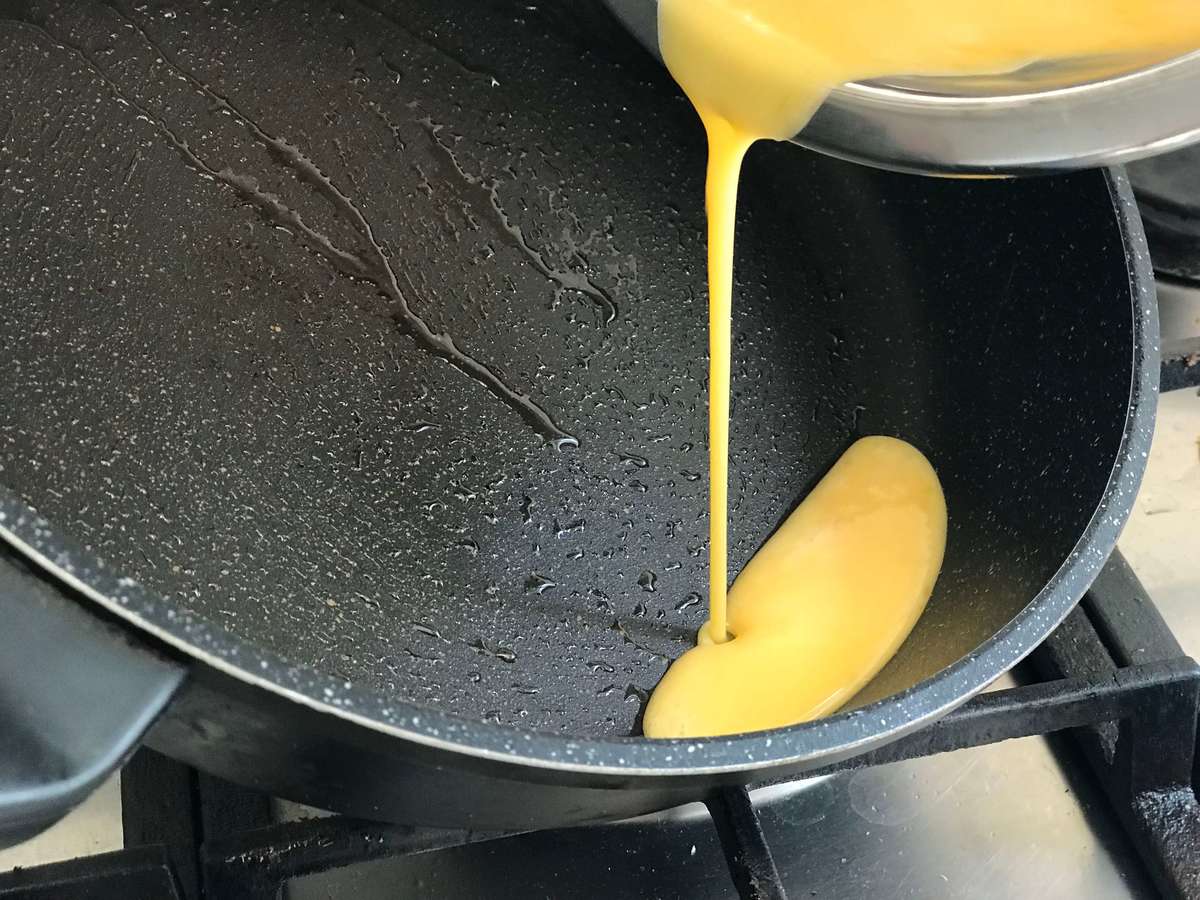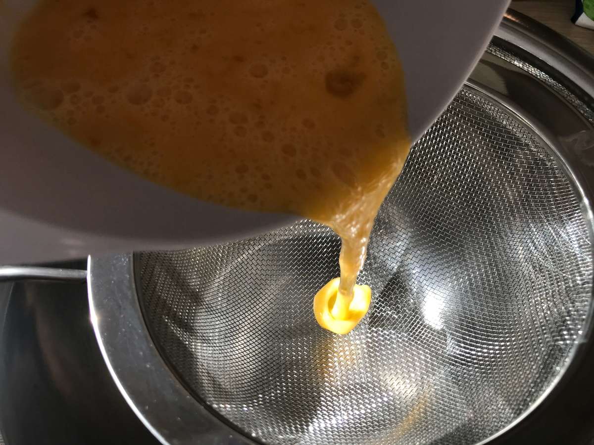 卵はしっかり混ぜて溶き、きめの細かいザルでこしておきます。