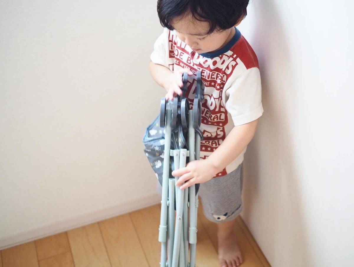 子どもでも簡単に押すことができ、使わない時は折りたたんでスリムに保管することができますよ。