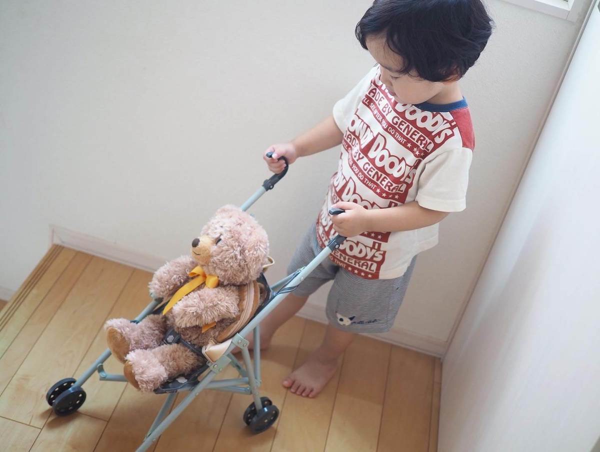 まず最初にご紹介するのは、人形やぬいぐるみを乗せて遊べるドールバギーです。