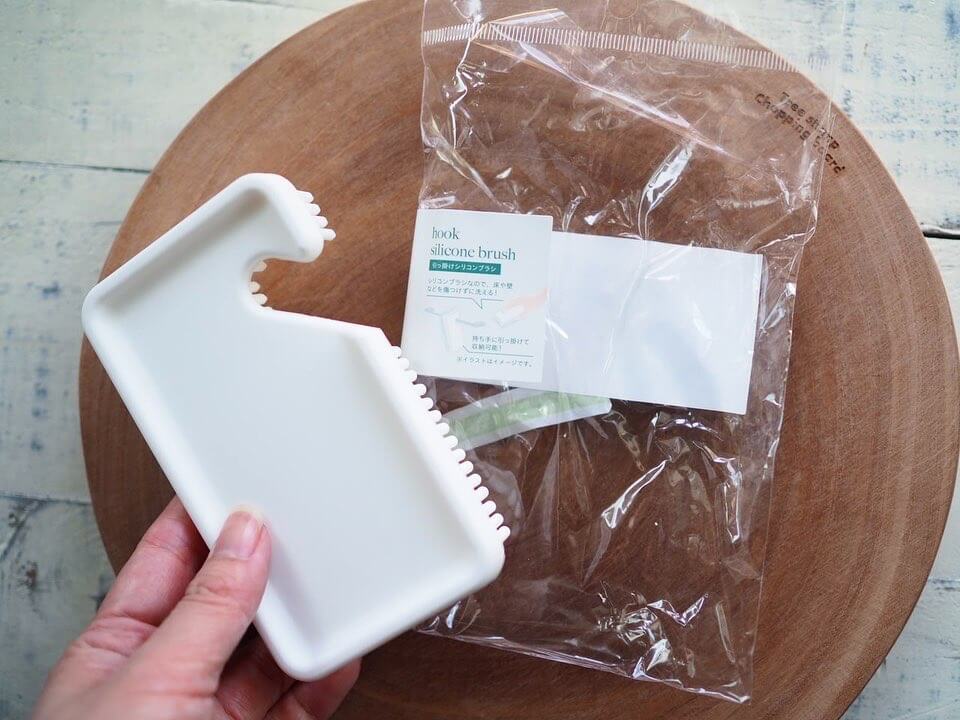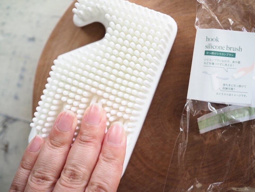 続いてご紹介するのは、お風呂掃除に便利な「引っ掛けシリコンブラシ」です。