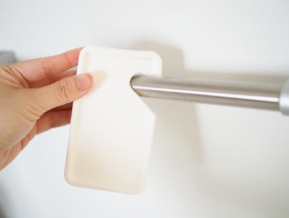 また、持ち手部分にくぼみがありタオルバーなどにそのまま引っ掛けられる形になっています。