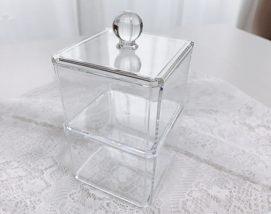 置いてあるだけでインテリアが格上げするクリアコットンケースでした。