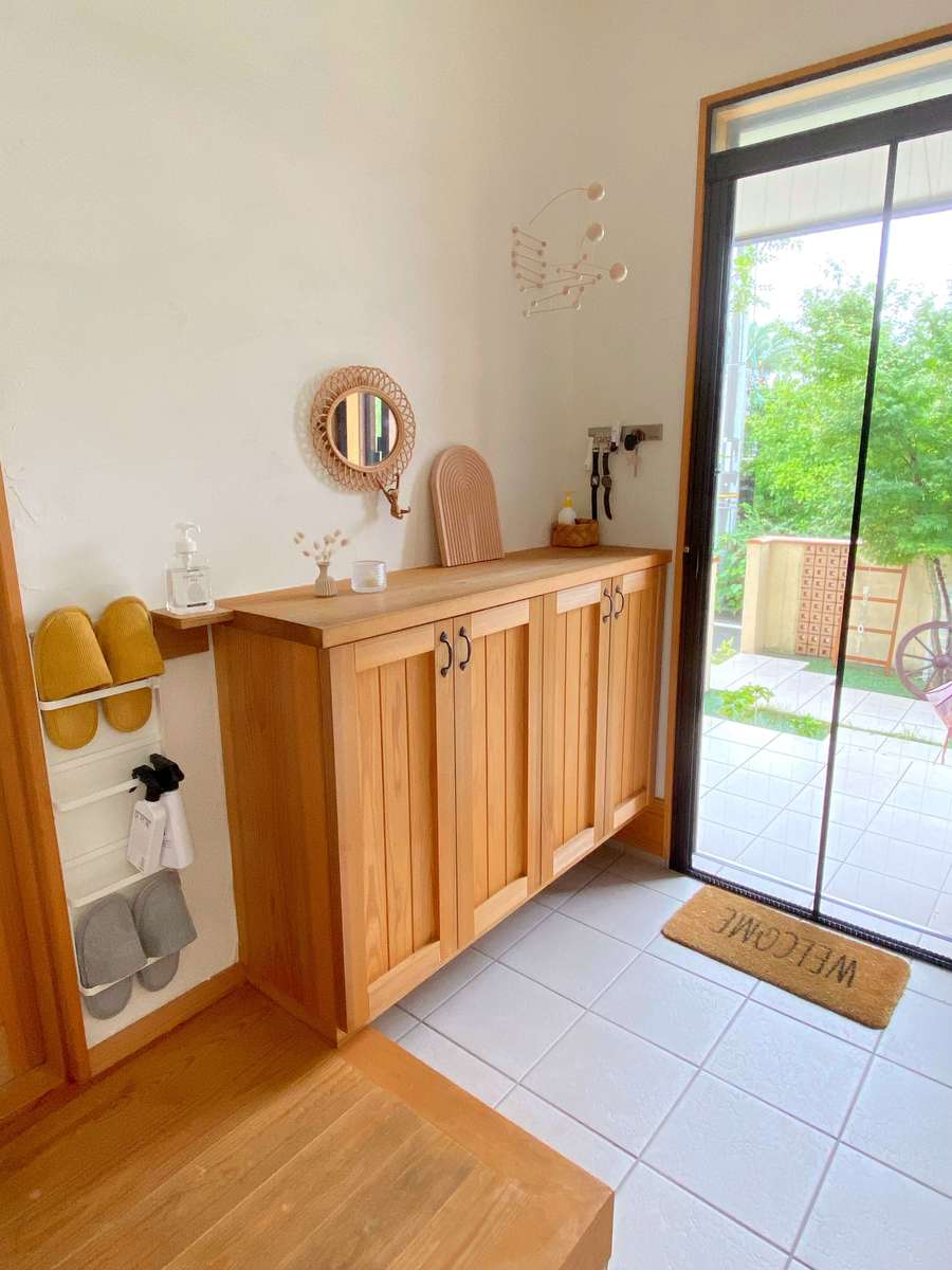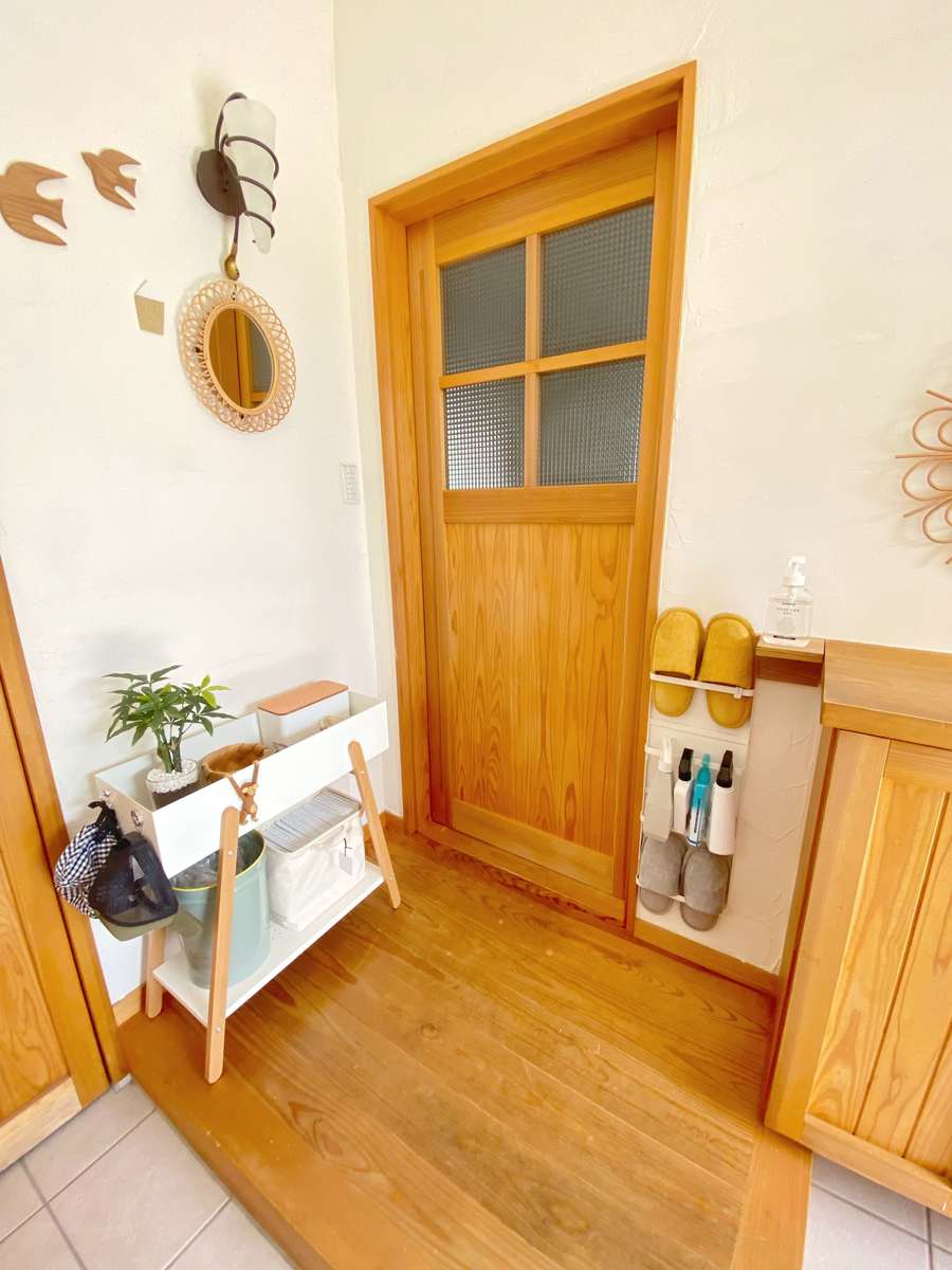 靴べらやお掃除ブラシ、お客様用スリッパ、お出かけに使うバッグなど……案外細かいもので溢れている玄関周り。