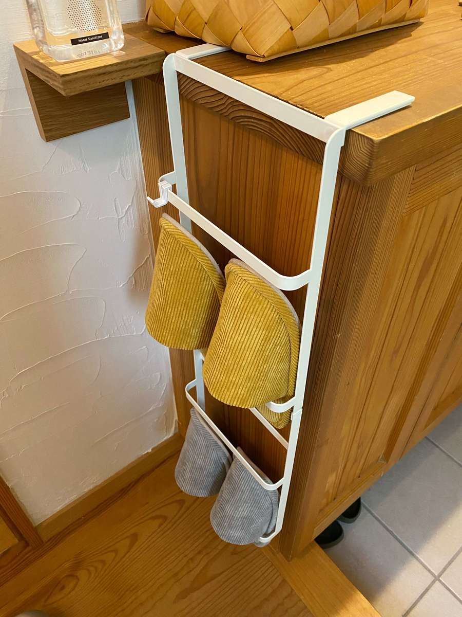 お客様用のスリッパも、今まではカゴに入れて直置きしていたのですが、towerのアイテムを使って浮かせました!