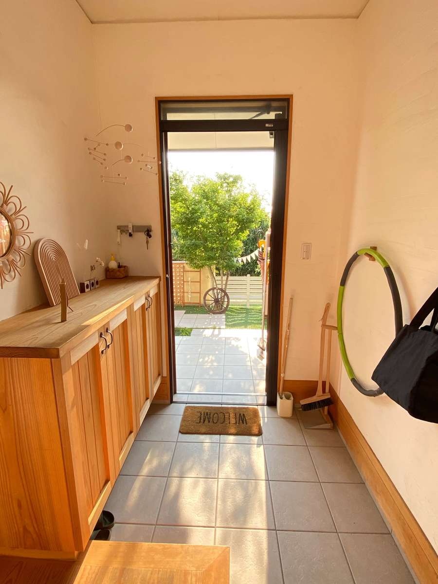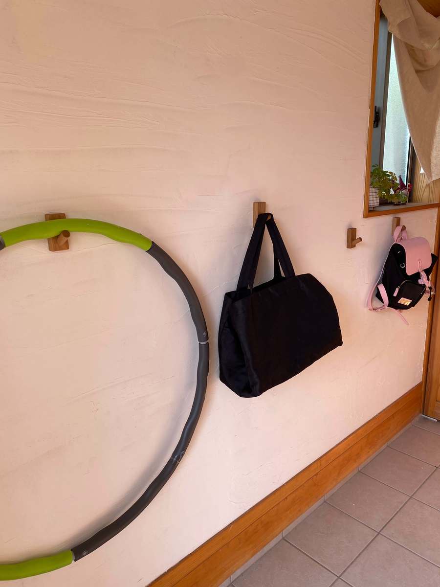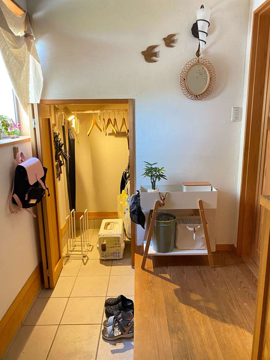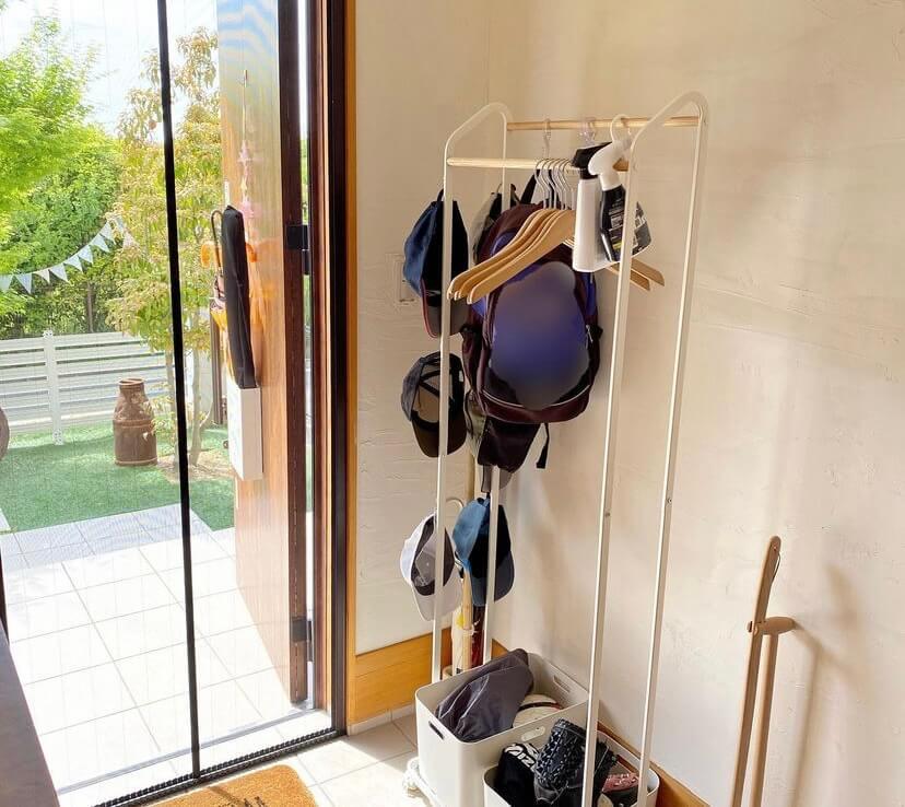 これまで玄関にはハンガーラックなど色々なものを置いていたのですが、ハンガーラックにかけていたものを土間収納に全部移動したのをきっかけに、その他の細々したものも収納方法を見直していきました。
