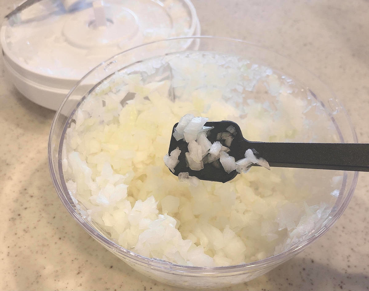 手動なので電気代もゼロ。玉ねぎは、涙を流すことなく細かいみじん切りができるのは嬉しかったです。