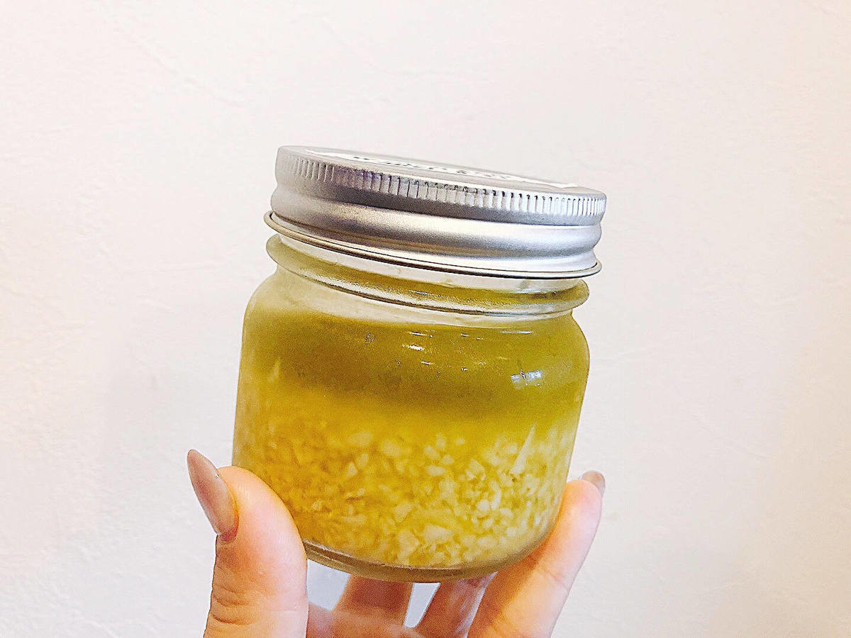 玉ねぎの時よりも数回多めに引っ張って細かいみじん切りにして、ニンニクオイルにしてみました。いい感じです!
