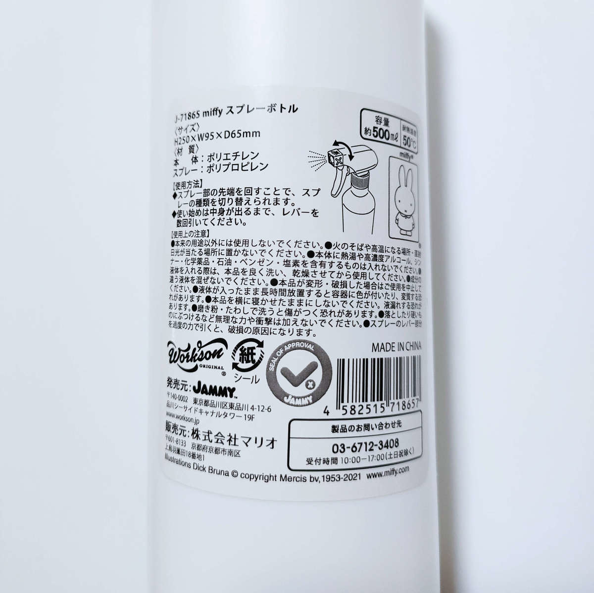 ミッフィーのスプレーボトルなんて珍しい!と思ったのと、ラス1だったので買わずにはいられませんでした。