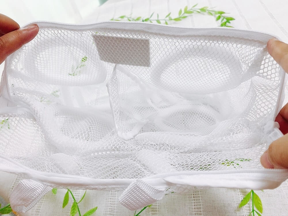 シューズランドリーネットと普通のランドリーネットの違いは、ネットの中にある仕切りとスポンジ。