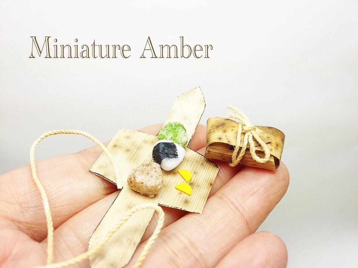 紅葉狩りやお月見がしたくなる、秋の行楽にぴったりな竹皮包のおむすび。こちらのミニチュアフードは、なんど28回も再販されている人気アイテム!