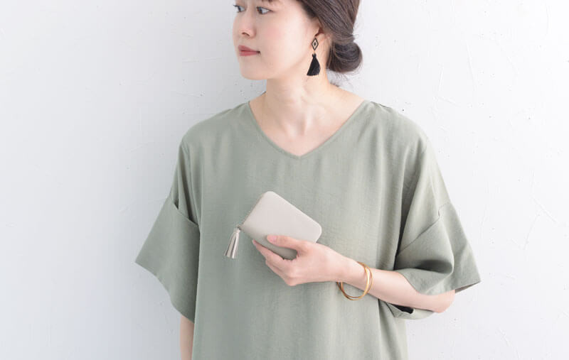 スマホやお財布とのコーディネートも楽しめるカラーバリエーションと、引手部分のタッセルがワンポイントに。大人の女性が納得して持てるクオリティです。