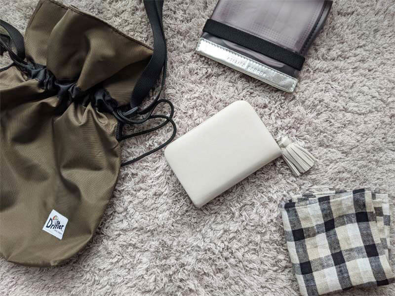 最低限のものだけミニ財布に入れて、入り切らなかったポイントカードや病院の診察券はカードケースに入れてます。」