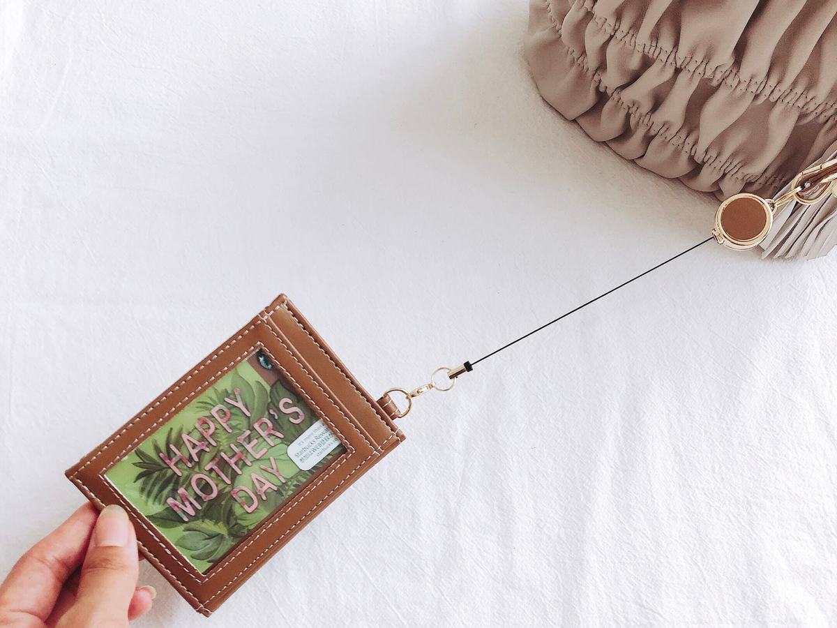 使いたいときに引っ張っぱるだけで、かばんなどに付けたまま支払いなどもサクッと済ませられちゃいますよ。